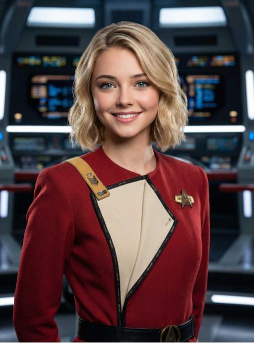 | Physical Description | At a petite 4’10” she is the opposite of physically intimidating. She’s no weakling, being able to drag around shuttle parts, but she wouldn’t win many boxing matches. She relies on being fast, agile and too sweet to be mad at in the first place. She’s cute, bordering on adorable, trim and proportioned. There isn’t a freckle on her, just smudges from her work. She prefers her mechanic's coveralls to her uniform any day of the week. |