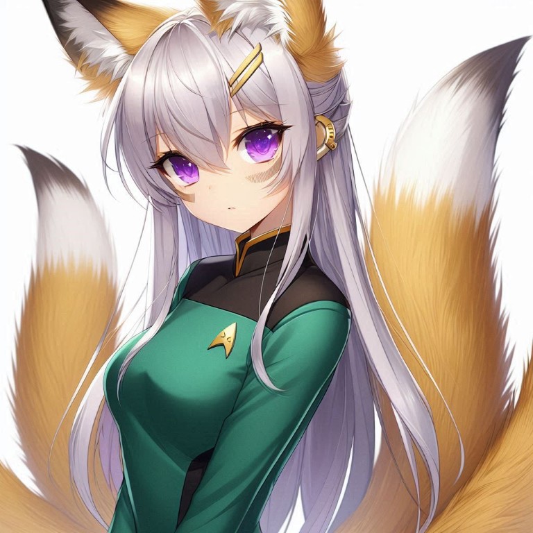 | Physical Description | From all appearances, Siat-or-iian is a smaller woman who stands out because of her sharp, defined features and her fluffy ears and four tails, the former which adds an additional 4 inches to her height when they stand erect. Her mood can often be told by those ears and how they flick around. She is much heavier than her stature would indicate given the build of the Feixians. Her long hair is of a silvery color, though the fur of her tail and ears along with a fine down on her hands and feet is a golden color with black highlights. In lieu of fingernails, she has sharp claws that she keeps filed down so they don't protrude very far. |